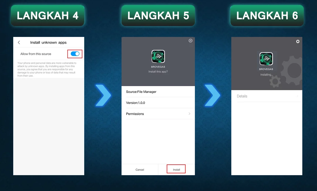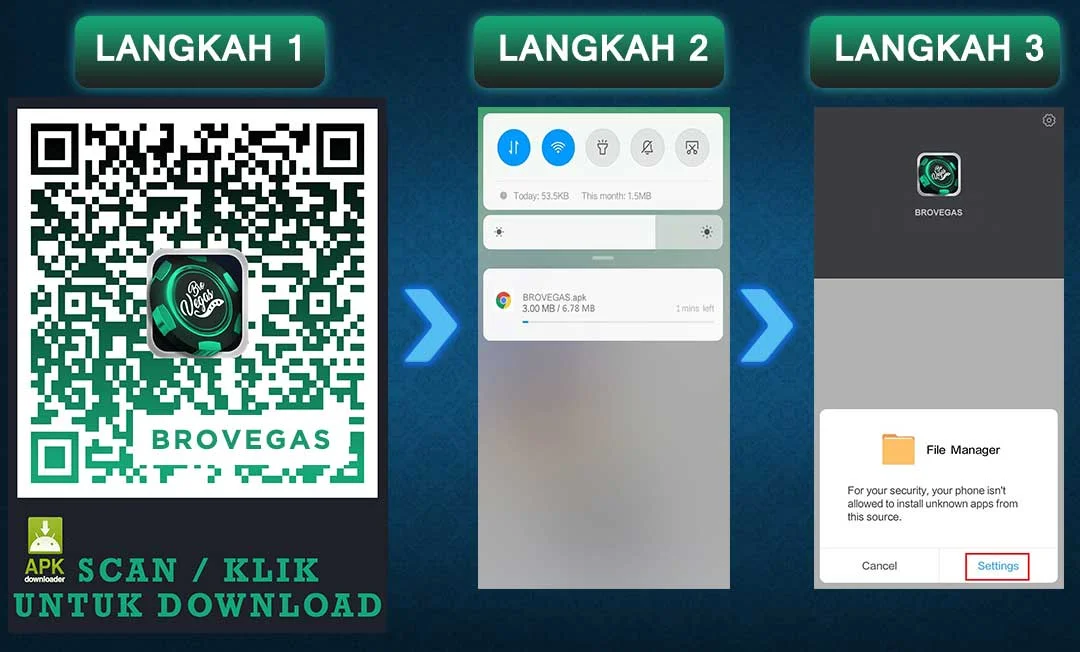 Berikut ini adalah cara download aplikasi android BROVEGAS pada handphone android anda :